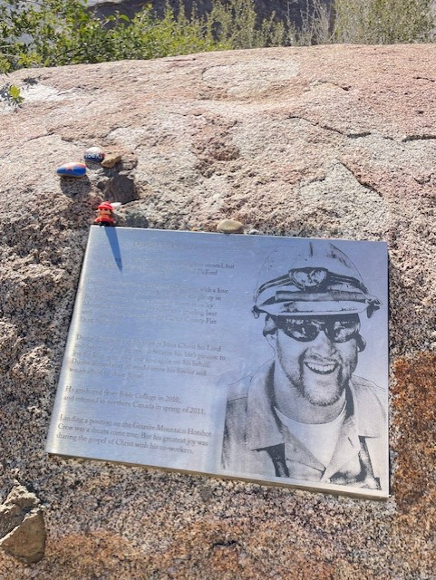 Just five days later, fourteen Scouts and eight adult leaders set out on a hike along the trail at Granite Mountain Hotshot Memorial State Park. Every six hundred feet along the trail, a stainless-steel plaque honors one firefighter, featuring a photo and short biography. The Scouts took turns reading each plaque, gaining insight into the lives, dedication, and courage of each team member.